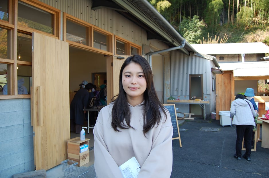 この綺麗なお姉さんがそにのわマルシェのプロジェクトを統括されている曽爾村農林業公社 地域おこし協力隊の浅田さんです。なんと神戸から移住されてこられたそうです。曽爾村では他にもたくさん若い方が活躍され、地元の方と協力して村おこしをされています。